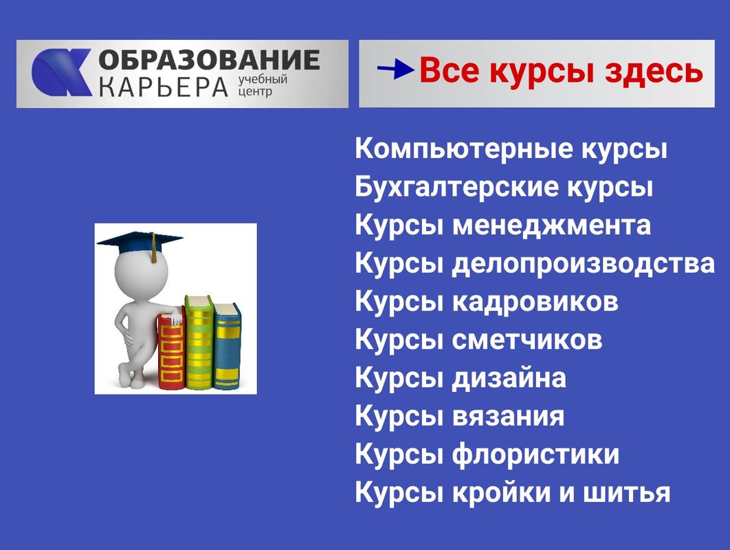 Мы занимаемся организацией компьютерных курсов. Наша жизнь в ходе развития технологий стала неразрывно связана с электронными машинами, значительная часть деятельности человека (профессиональной и не только) происходит онлайн. Под нашим руководством вы познакомитесь с программами 1С, 3ds Max, Autodesk, AutoCAD, Excel, Adobe Illustrator, Adobe Premiere, CorelDRAW, Microsoft Office и Photoshop, основами веб-дизайна, машинописи и программирования. Для тех, кто только начинает свое знакомство с миром IT, мы ведем курс по основам компьютерной грамотности.